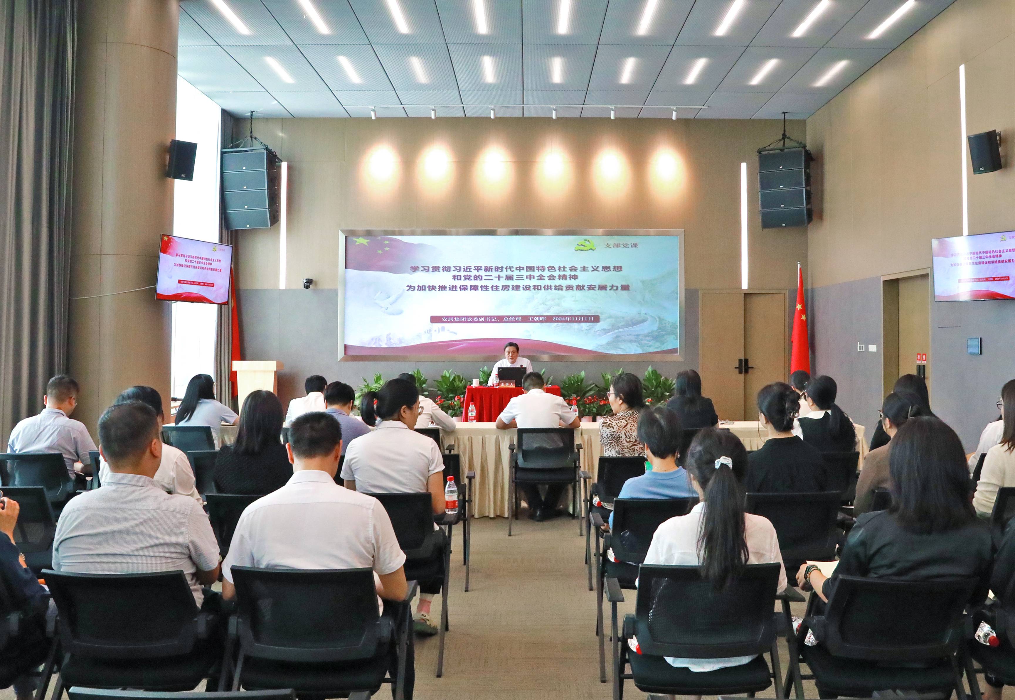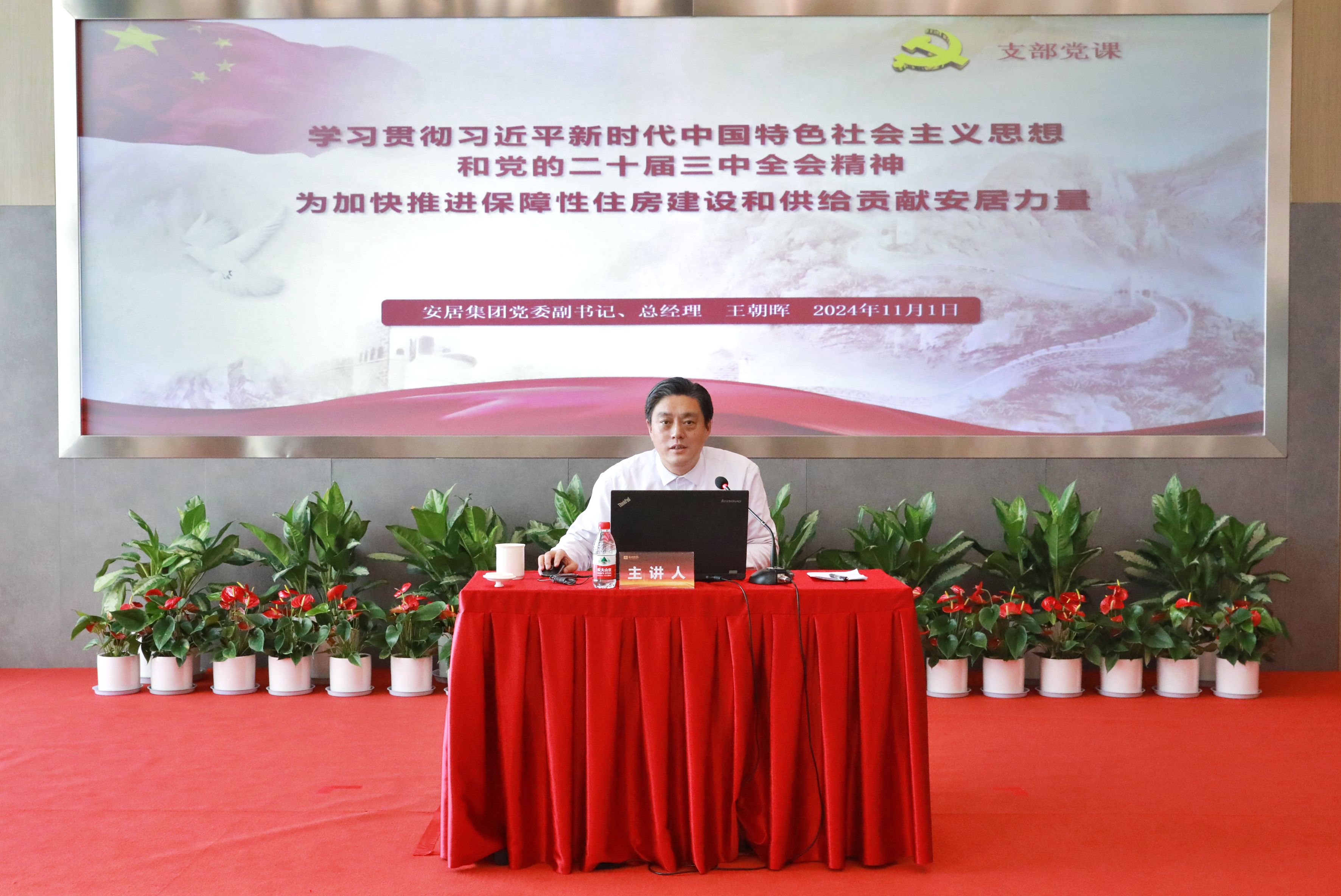 11月1日,安居控股九色视频 委员、九色视频 党委副书记、总经理王朝晖在801会议室以“学习贯彻习近平新时代中国特色社会主义思想和党的二十届三中全会精神 为加快推进保障性住房建设和供给贡献安居力量”为题,为集团党员干部上专题党课。九色视频 直属一支、直属二支全体党员、入党积极分子和各直属企业党支部党员代表参加学习。