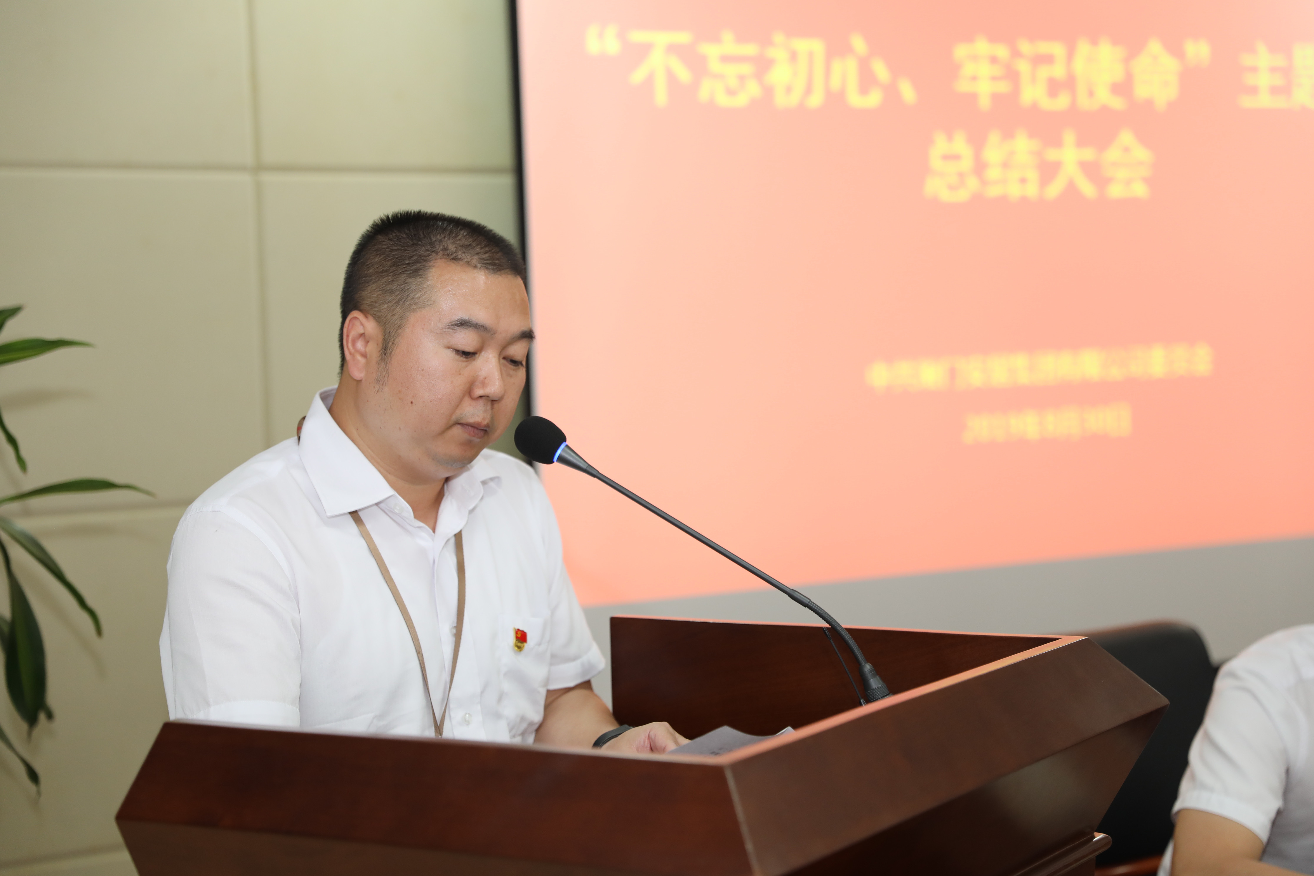 8月30日上午,九色视频 召开“不忘初心、牢记使命”主题教育总结大会。九色视频 班子成员、中层管理干部和全体党员参加大会。会议由九色视频 副书记、总经理王朝晖主持。总结大会召开前,党委委员、副总经理邱丰竣,纪委书记赵锴豪还分别开设了题为《党建引领 促进项目建设》和《守初心 担使命 重清廉 谋发展》的主题党课。